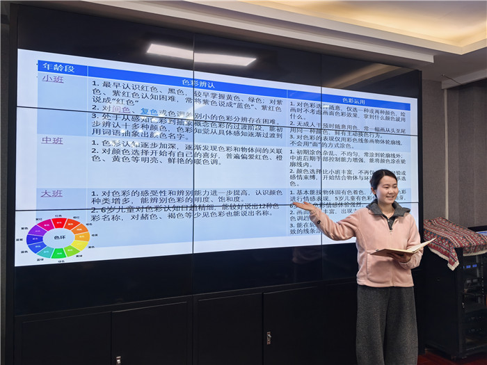本次教研公开课围绕“色彩基础理论与教学实践”展开深度研讨。活动伊始,张婷老师带领大家系统回顾了本学期美术主题教研的“进阶路径”:从美术教学基础理论学习,到教学策略与案例回溯,再到理论学习与解读案例优化,最终聚焦本次“色彩专项”学习,并明确了“理解色彩理论、识别幼儿色彩认知规律、应用于教学实践”的三维目标。