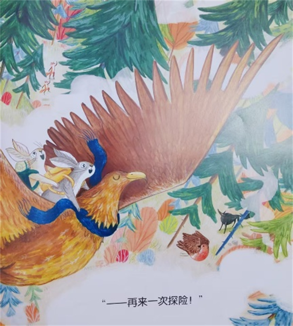 他又骑上了飞快的鹿。天哪,太快了,幸亏带了围巾,才能紧紧抓牢。森林简直是一个全新的世界,洛根看到了麻雀、松鼠和蝴蝶就是没看到露娜!