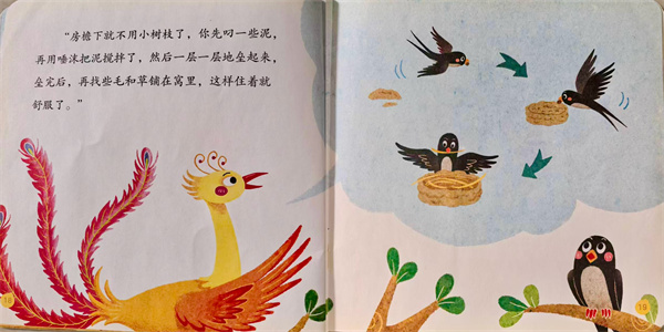 凤凰看着认真听讲的小燕子,露出了微笑。它欣慰地说:“接下来是筑窝的秘诀,你可要好好听了。”