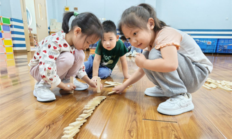 多米诺积木搭建游戏是一次充满挑战与惊喜的探索旅程。它不仅让幼儿在“倒下”与“重建”中收获了宝贵的技能和品质,也让教师在实践中深化了对幼儿学习和自身角色的理解,持续反思、优化材料与策略,通过游戏,促进幼儿各方面经验的发展。(孙悦刘丽媛文皖芹 陈晨)