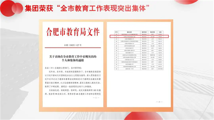 一路前行,一路收获。这一年,集团荣获“全市教育工作表现突出集体”、2024年度区教体系统宣传报道“最佳单位”,此外在教育教学方面更是硕果累累。海棠园市级课题顺利结题,多位教师分别荣获“2025年合肥市幼儿园教师教育技能比赛”综合奖及单项技能一等奖、市优质课一等奖、市语言基本功比赛一等奖、市普通话大赛优秀奖等多项荣誉,在课程优化、师幼互动、教研提质中稳步前行,书写了高质量育人答卷。
