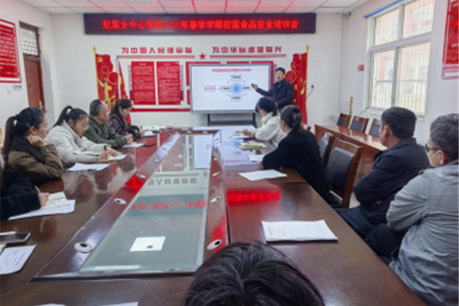 3 月 4 日,太和县赵集乡中心学校召开春季学期校园食品安全专题培训会暨现场办公会,辖区内各中学、幼儿园食堂相关负责人及从业人员参会,旨在压实校园食品安全主体责任,规范食堂膳食经费管理与操作流程,保障师生饮食安全和身体健康。
