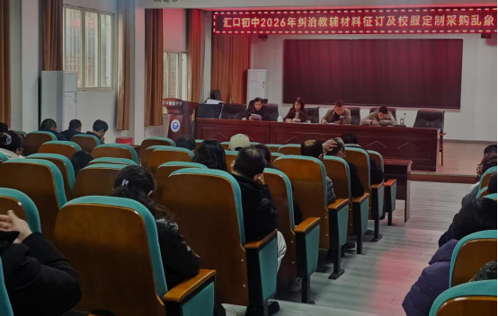 3月20日中午,宿松县汇口初中召开2026年纠治教辅材料征订及校服定制采购乱象专项部署会议,全体教职工参加会议。