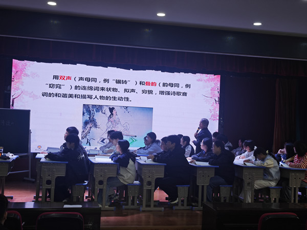 评课环节中,两校语文教师齐聚一堂,各抒己见、交流研讨。授课教师先结合课堂实践进行自评,分享教学设计思路,反思教学中的亮点与不足;听课教师则围绕课堂目标达成、教学方法运用、学生主体发挥等方面畅所欲言,既充分肯定了两堂课在诵读浸润、情境创设、文化挖掘上的亮眼之处,也针对课堂生成、活动设计等方面提出了切实可行的优化建议。在思维的碰撞与经验的交流中,大家凝聚了经典诗词教学的共识,明晰了以读促悟、以研促教的教学方向,为后续深耕古典诗词课堂积累了宝贵经验。