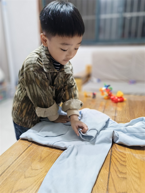 为进一步激发幼儿自我服务的意识,教师利用班级群与家长互动达成共识,在家也为幼儿提供自主练习的机会,鼓励幼儿整理个人物品、叠衣服。以“整理大比拼”为契机,也让家长更加重视幼儿生活自理能力的培养,为幼儿后续生活和学习打下坚实基础。