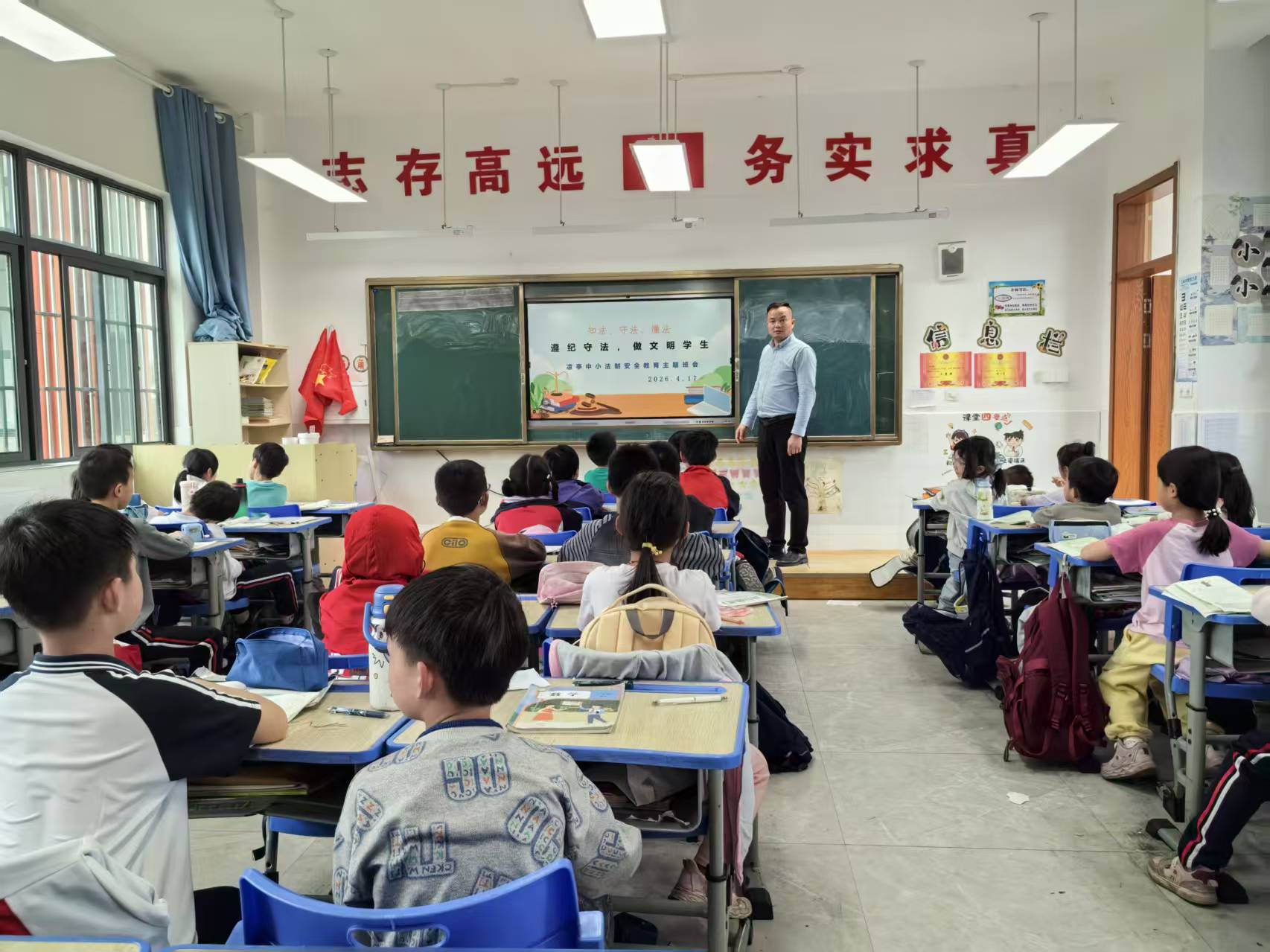 为进一步增强学生法治观念和文明意识,引导学生自觉遵守校规校纪、养成良好行为习惯,营造安全、文明、和谐的校园氛围,4月17日,宿松县凉亭镇中心小学组织全校各班召开“遵纪守法,做文明学生”主题班会。