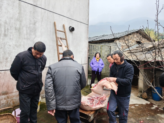 正值岁末寒冬,黄山区耿城镇城澜村脱贫户孙意发家的院子里却暖意融融、笑声不断。在村干部们化身“销售员”的鼎力相助下,他家宰杀的年猪,仅用半天时间便销售一空,销售额达5000余元。看着忙碌的身影和手中的收款,孙意发脸上洋溢着止不住的笑容。