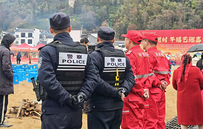 近日,黟县柯村镇“红韵柯村·年禧艺趣嘉年华”活动精彩启幕,市集逛购、特色美食免费品尝、民俗表演等环节吸引了大批游客与当地群众参与,黟柯红星应急服务队全员在岗,为活动筑牢安全防线。活动现场,安排8名队员派至市集区域、免费品尝区、表演舞台等重点点位,开展定点值守与动态巡逻。针对市集人流密集、品尝区涉及食品与用火安全、表演舞台周边人员聚集的特点,队员们重点做好人流疏导、安全隐患排查、突发情况应急准备等工作,及时提醒游客注意现场秩序与自身安全。
