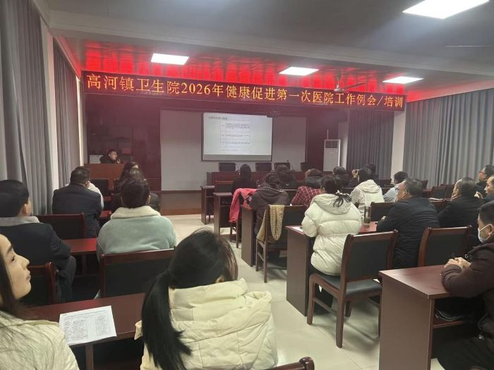 为扎实推进健康促进医院建设工作,1月15日,怀宁县高河镇卫生院召开了2026年健康促进医院建设第一次工作例会。会议由健康促进医院创建领导小组组织,由院长陈春来主持,参会人员有院领导班子、健康促进工作小组成员和各社区(村)卫生室负责人。