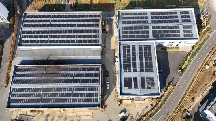 2022年,月潭湖镇投入资金1160万元,在陈霞集镇东南角建成移民产业园,招引休宁县富山竹艺、畅优注塑等企业入驻。近年来,随着入驻企业不断发展壮大,如何在保障安置点人居环境的前提下,缓解企业用电压力,成为月潭湖镇持续优化营商环境,助推镇域发展的头等大事。为此,2025年,月潭湖镇将目光投向了移民产业园的闲置屋顶,多方筹措各类资金共计160万元,实施月潭湖镇乡村振兴产业园光伏项目,对厂房屋顶进行加固处理并新建光伏发电设备5000平方米,最大装机容量550千瓦,年发电量约50万千瓦时。2026年1月,该光伏项目正式完成并网并产生电量收益,预计年收益20余万元。