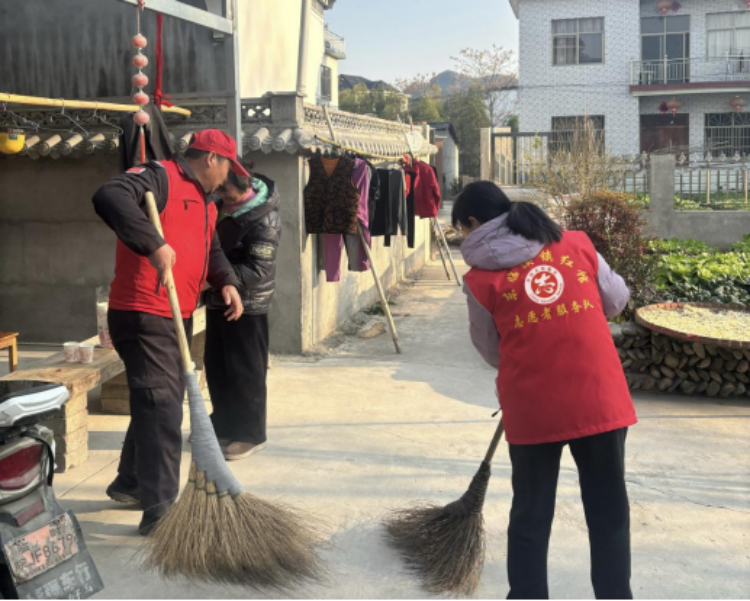 慰问过程中,志愿者们主动帮助村民们打扫庭院、整理房间,以细致入微的服务传递关怀。姚华亮逐户送上慰问品和新年祝福,与大家亲切交谈,详细询问身体状况和生活情况,叮嘱他们注意保暖、保重身体,让每一户都感受到来自社会的关心与牵挂。