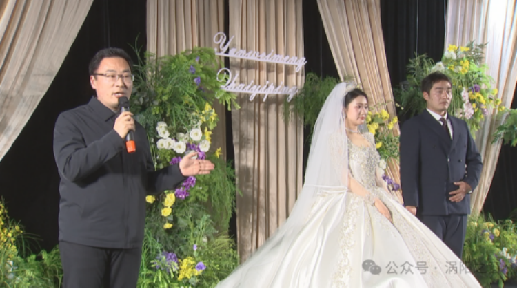 他们的真感情打破了以往的陈规陋俗,所以他们为各位青年树立了重情轻礼的好榜样。在这里,我号召大家一起共同响应低价彩礼,响应移风易俗的号召,祝福两位新人,永沐爱河、共赴山海。牌坊镇镇长赵冲说道