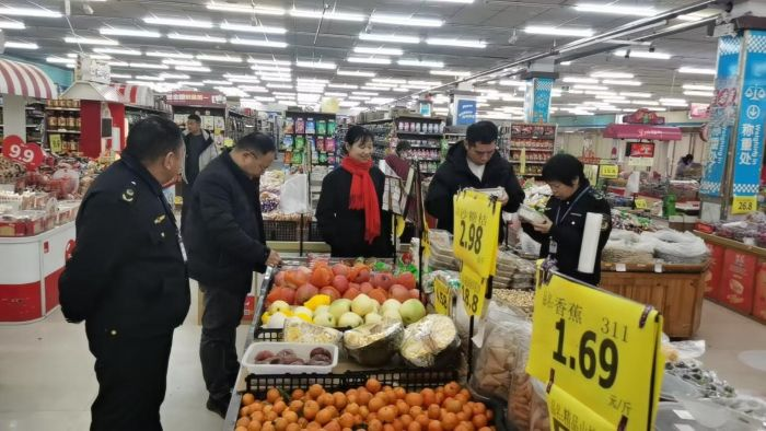 近日,关帝庙镇组织应急管理、市场监管等部门成立联合检查组,对辖区重点商超开展食品安全专项检查行动,筑牢食品安全防线。