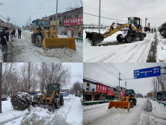 干群同心,掀起清雪“大会战”。大雪停歇后,全镇上下迅速行动,机关干部、村(社区)党员干部率先垂范、冲锋在前,带着提前备好的清雪工具走上街头、村口,对主干道、背街小巷、人行步道等区域的积雪冰块进行集中清理。在清理现场,大家分工明确、配合默契,有的挥舞铁锹破冰铲雪,有的手持扫帚清扫余雪,有的指挥铲车对大面积积雪进行集中清运,“机械+人工”协同作战,形成了强大的清雪合力。周边群众见状也纷纷自发携带工具加入队伍,大家心往一处想、劲往一处使,忙碌的身影在白雪覆盖的路面上构成了一道温暖的风景线。