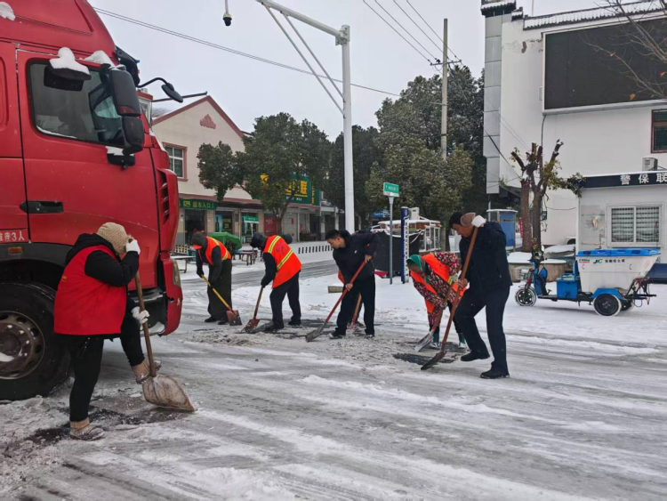 城管系统联合标的环卫企业秉持重点区域先作业思路,聚焦集镇岔口、桥梁涵洞、坡道弯道、学校周边等关键区域。采取“人工铲除和抛洒融雪剂”协同作业模式,铲雪车对主干道进行大面积积雪推扫作业,环卫工人用铁锹、扫把对集镇四岔口、机关单位出入口等区域进行铲雪,针对易结冰路段,科学抛洒融雪剂,有效加速冰雪融化,防止路面二次结冰。