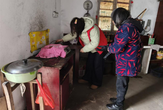 降雪降温天气来临,太湖县寺前镇林冲村迅速行动,组织村干部、志愿者对村内独居老人、困难群众等重点人员开展用火用电安全专项检查。