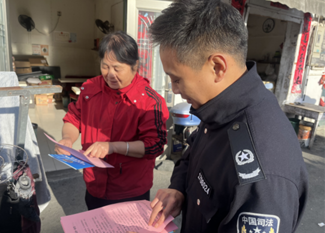 本次活动紧扣岁末年初社会特点和群众法律需求,聚焦重点领域,通过多种形式开展精准普法。针对春节期间易发的财产安全、道路交通安全、防范电信网络诈骗、非法集资、烟花爆竹安全燃放、农民工工资支付、家庭邻里纠纷化解等问题,工作人员与普法志愿者通过入户发放宣传资料等方式,向群众普及各项法律法规,并结合真实案例进行以案释法,提醒群众增强风险防范意识,守护好自身的“钱袋子”和人身安全。据统计,此次活动共发放各类法治宣传册、普法纪念品400余份,现场解答法律咨询20余人次。