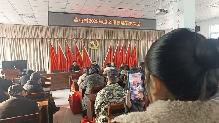 云端直播扩影响,让榜样力量“走得远”。为打破地域限制,让在外务工村民、行动不便的老人也能共享这份荣誉,黄屯村创新采用“关帝庙镇黄屯村新时代文明实践站直播间”直播,对表彰大会进行全程实时推送。直播镜头里,受表彰村民胸戴红花、笑容灿烂,领奖的喜悦扑面而来;评论区里,在外务工的村民纷纷留言点赞:“为家乡的榜样骄傲!”“回去后我也要向他们学习!”这场“云端表彰大会”累计吸引超300人次在线观看,实现了“会场内表彰先进、会场外凝聚人心”的良好效果。