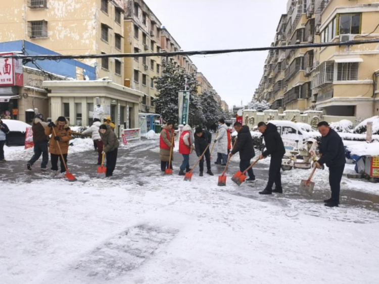 近日,寒潮来袭引发持续降雪,辖区内主干道、小区出入口、人行步道被积雪覆盖,部分路面结冰打滑,给居民出行带来极大安全隐患。为保障群众出行安全,涡阳县星园街道新苑社区以雪为令、迅速响应,第一时间启动应急处置预案,组织社区工作人员、党员志愿者、物业团队及热心居民组建“风雪攻坚队”,一场以“保畅通、护安全、暖民心”为目标的扫雪铲冰行动全面展开。