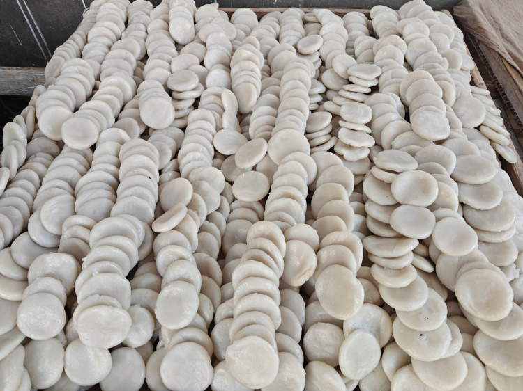 米粿是当地春节不可或缺的美食,承载着村民对新年的美好期许。制作米粿的工序讲究“手作”与“匠心”,先将精选的糯米浸泡数小时,磨成细腻的米浆后压干水分,再反复揉捻至米团柔韧有弹性。村民们分工协作,有的揉团、有的压片,手法娴熟利落,不一会儿,白白胖胖的米粿就铺满了案板。