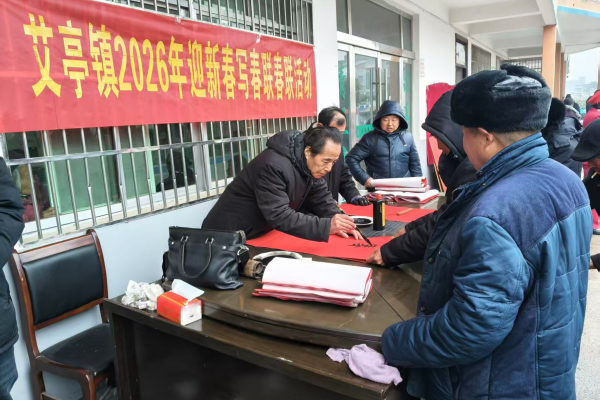 (图为艾亭镇文化站请来临泉书协会员为群众送春联)