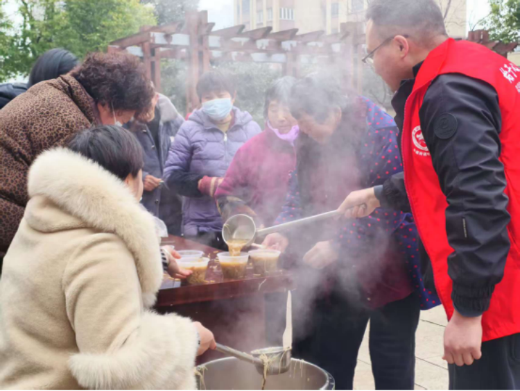 社区书记王威带领工作人员逐一提送热粥,“慢点接,小心烫” 的叮嘱不绝于耳。针对行动不便的特殊群体,工作人员 “一对一” 送粥到手,贴心服务尽显人文关怀。此次活动累计发放腊八粥 300 余碗,居民们围坐唠家常、忆年俗,一碗碗咸香热粥不仅驱散了冬日寒意,更串联起邻里情谊,让传统节日的文化魅力在烟火气中充分彰显。