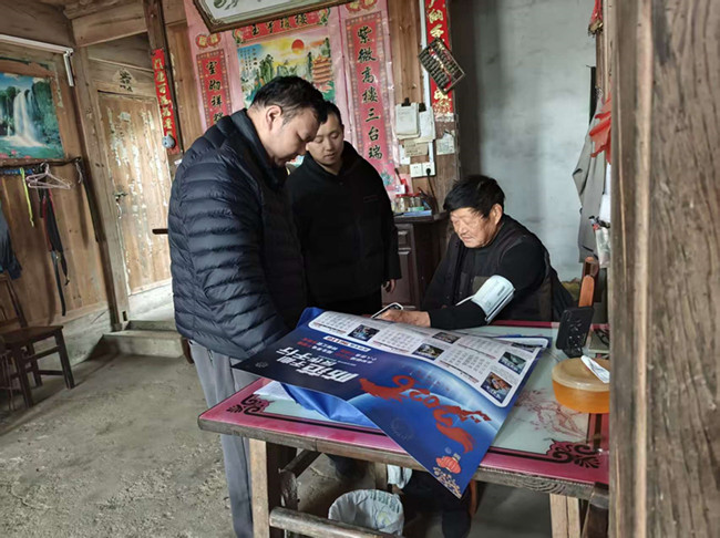 春节临近,为筑牢节日安全防线,营造平安和谐氛围,黟县柯村镇综治中心牵头,联合镇派出所、卫生院组建宣传队伍,深入村组开展反诈骗、反邪教、防范非法集资“三防”入户宣传,将安全知识送到群众身边。
