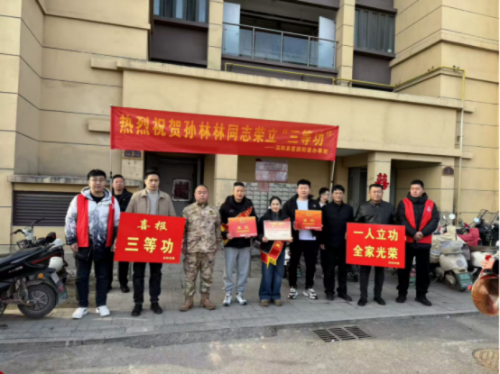 鼓乐铿锵传捷报,喜报登门暖军心。2月12日,星园街道组织武装部、退役军人服务中心、村工作人员为荣立三等功的军人孙林林送上荣立三等功喜报和慰问金,让军营荣光走进家门、温暖邻里。