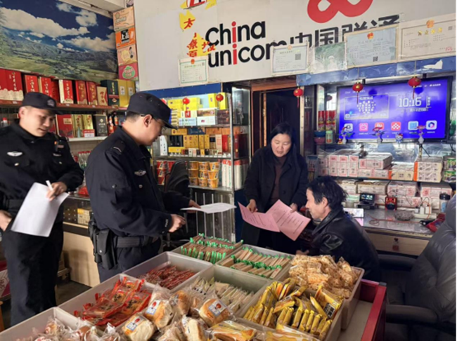 村“两委”组成宣传小队,通过标语宣传、发放宣传单、张贴安全警示信、入户讲解等方式,向村民普及安全燃放知识,明确禁放区域、燃放规范及注意事项。同时,对村内小卖部、沿街商铺等重点场所开展拉网式排查,严查非法储存、销售烟花爆竹行为,现场讲解“五个严禁、三个务必”要求,督促经营户落实安全责任,及时消除安全隐患。