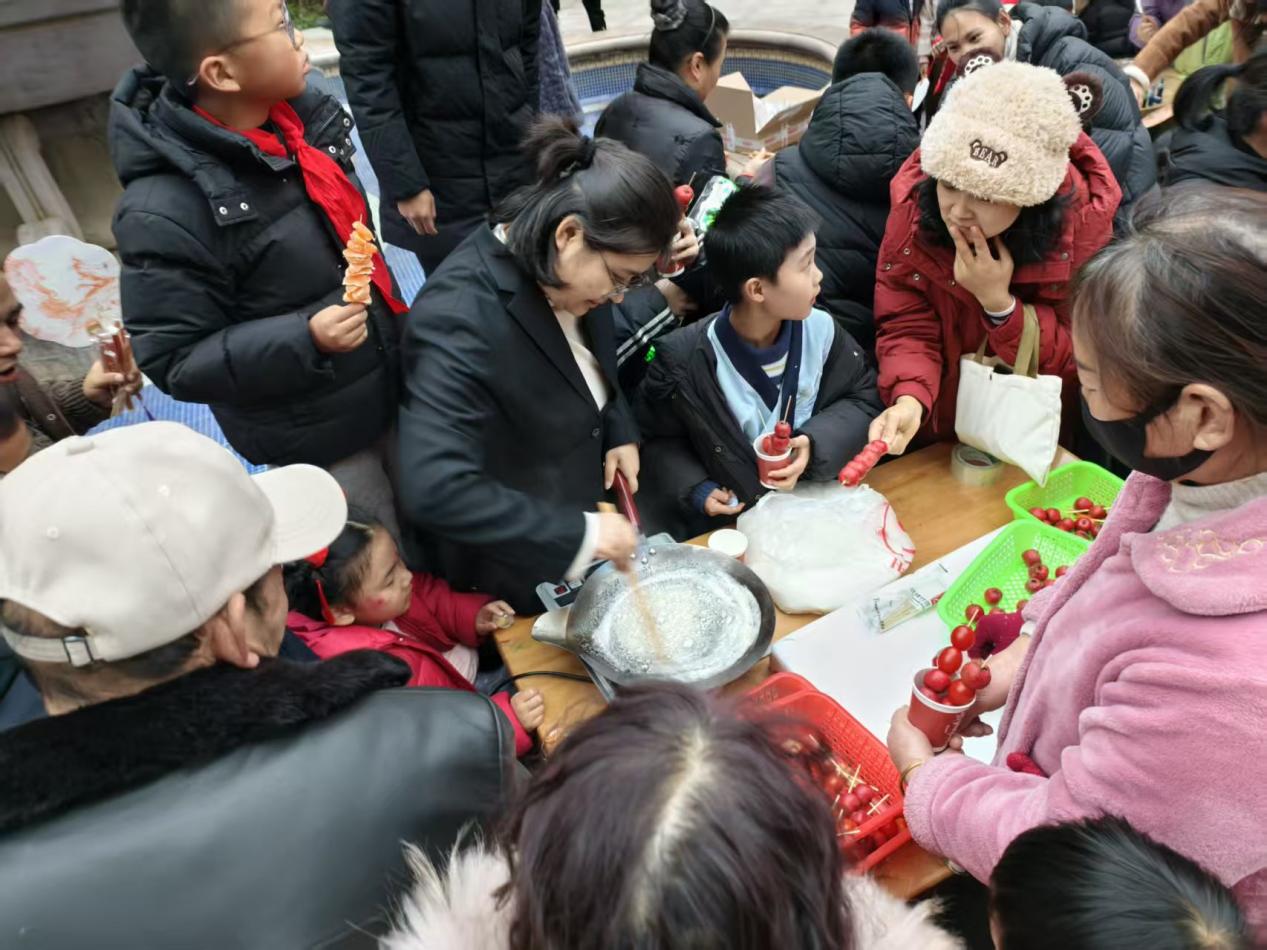 传统庙会焕新彩,童趣游园乐翻天。庙会现场设置了丰富多彩的互动体验区,瞬间将大家带回了充满回忆的传统集市。游戏中寻年趣: 套圈、巧夹乒乓球等经典游戏区域人头攒动,孩子们屏气凝神,瞄准目标,每一次成功都引来阵阵欢呼,欢笑声此起彼伏。舌尖上的年味: 糖葫芦、糖画等传统美食摊位前,孩子们品尝着酸甜可口的糖葫芦,看着摊主用糖稀画出栩栩如生的图案,脸上洋溢着幸福的笑容。