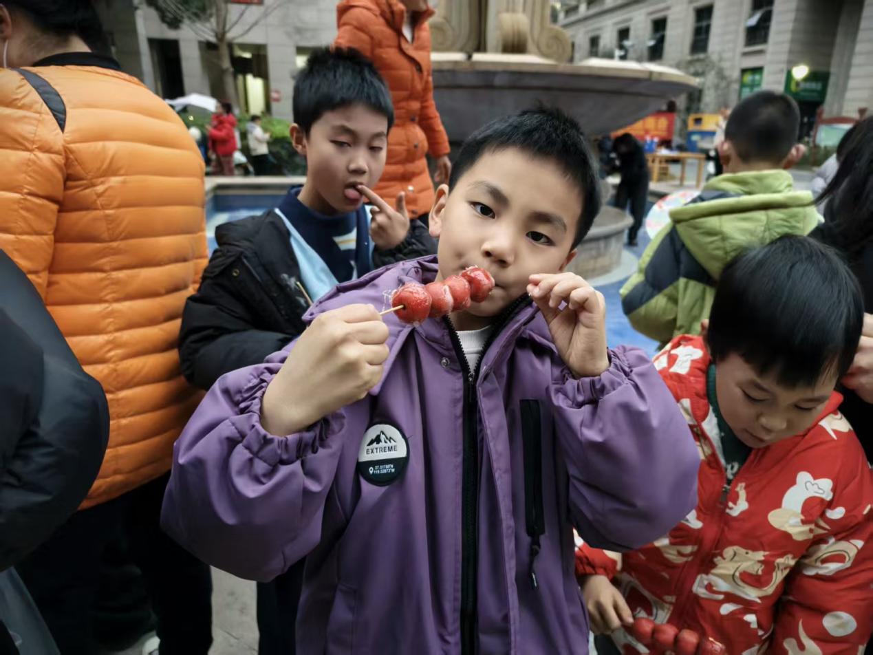 图为孩子们品尝糖葫芦