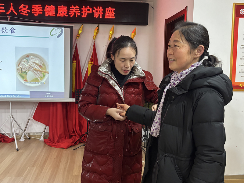 活动开始之际,来自益正堂健康管理中心的王老师深度融合冬季独特的气候特点以及老年人日益衰退的生理机能特征,从饮食调养、起居作息、情志调节、穴位保健等关键方面,为老人们呈现了一场精彩纷呈、内容丰富的养生知识盛宴。