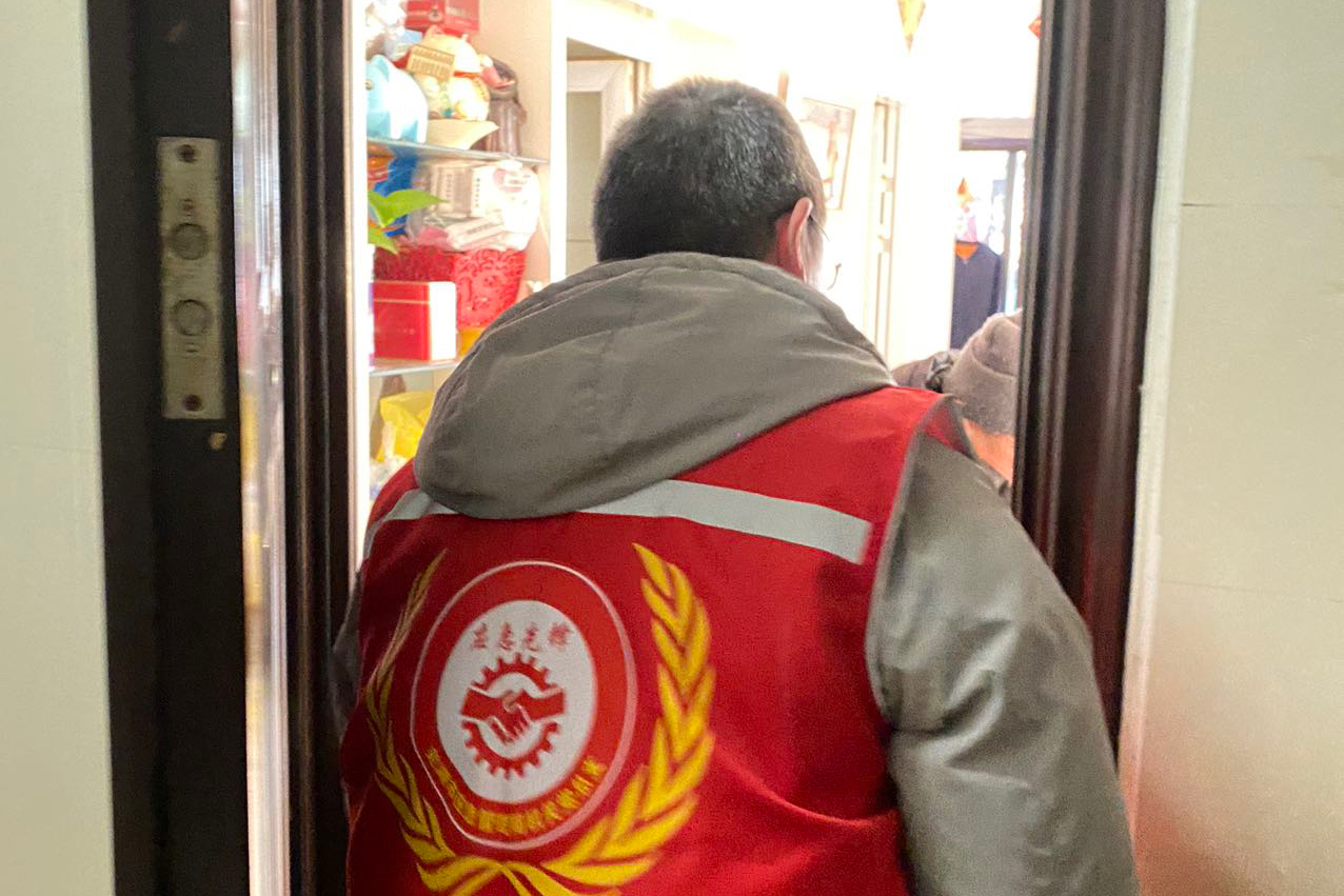 图为志愿者敲门入户宣传