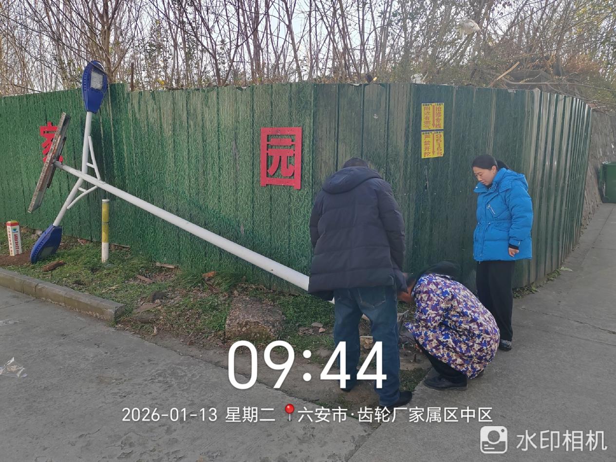 “以前晚上下班,楼栋门口的灯暗得像蒙了层雾,踩着台阶都得眯着眼找;现在新灯一亮,整个楼道口都亮堂了,心里也踏实多了!”家住六安齿轮厂家属区5栋的张大爷,看着小区更换过后的大灯,连连竖起大拇指。2026年1月13日,这场老旧小区主干道破损路灯更换工程,正让这个建成近30年的老旧小区,重新焕发“光亮”。