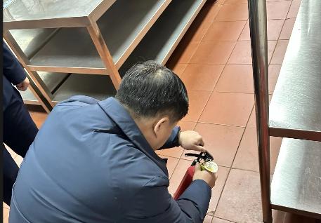 “党建红”守平安年 大检查护千万家。检查小组采取“拉网式排查+重点领域攻坚”的方式,深入辖区居民楼、沿街商铺饭店、公园、工地、公共活动区域等关键部位,开展全方位安全“体检”。在消防安全领域,重点核查消防通道是否畅通、电动自行车是否存在“进楼入户”“飞线充电”等违规行为,仔细检查灭火器、消火栓等器材的压力是否充足、是否在有效期内,对楼道内堆放的废旧家具、纸箱等易燃杂物现场清理,张贴“消防通道严禁占用”警示标语。在燃气与用电安全领域,对餐饮门店、居民家庭的燃气管道、阀门、连接软管进行细致检查,查看是否安装合规燃气报警器、用气环境是否通风良好,严查燃气软管超期使用、电线私拉乱接、线路老化等隐患,现场指导居民规范使用大功率电器。针对老旧房屋与特殊群体,检查小组重点排查墙体开裂、线路老化等问题,对存在安全风险的区域及时拉设警示线;同时上门走访独居老人、残障家庭,帮助排查居家安全隐患,讲解冬季防火、防一氧化碳中毒等常识,筑牢特殊群体安全防线。此外,还对辖区商超、便利店的食品安全、烟花爆竹规范销售等情况进行核查,确保节日消费安全。