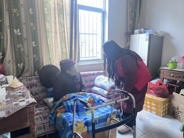 顶着凛冽寒风,社区工作人员与网格员带着温馨提示,逐户敲响辖区重点群体家庭的大门。每到一户,工作人员都与群众亲切交谈,细致询问他们的身体状况、取暖方式和生活需求,耐心叮嘱寒潮期间务必减少外出,做好添衣保暖和防滑防冻措施,如需采购生活物资或遇到困难,可随时联系社区寻求帮助。