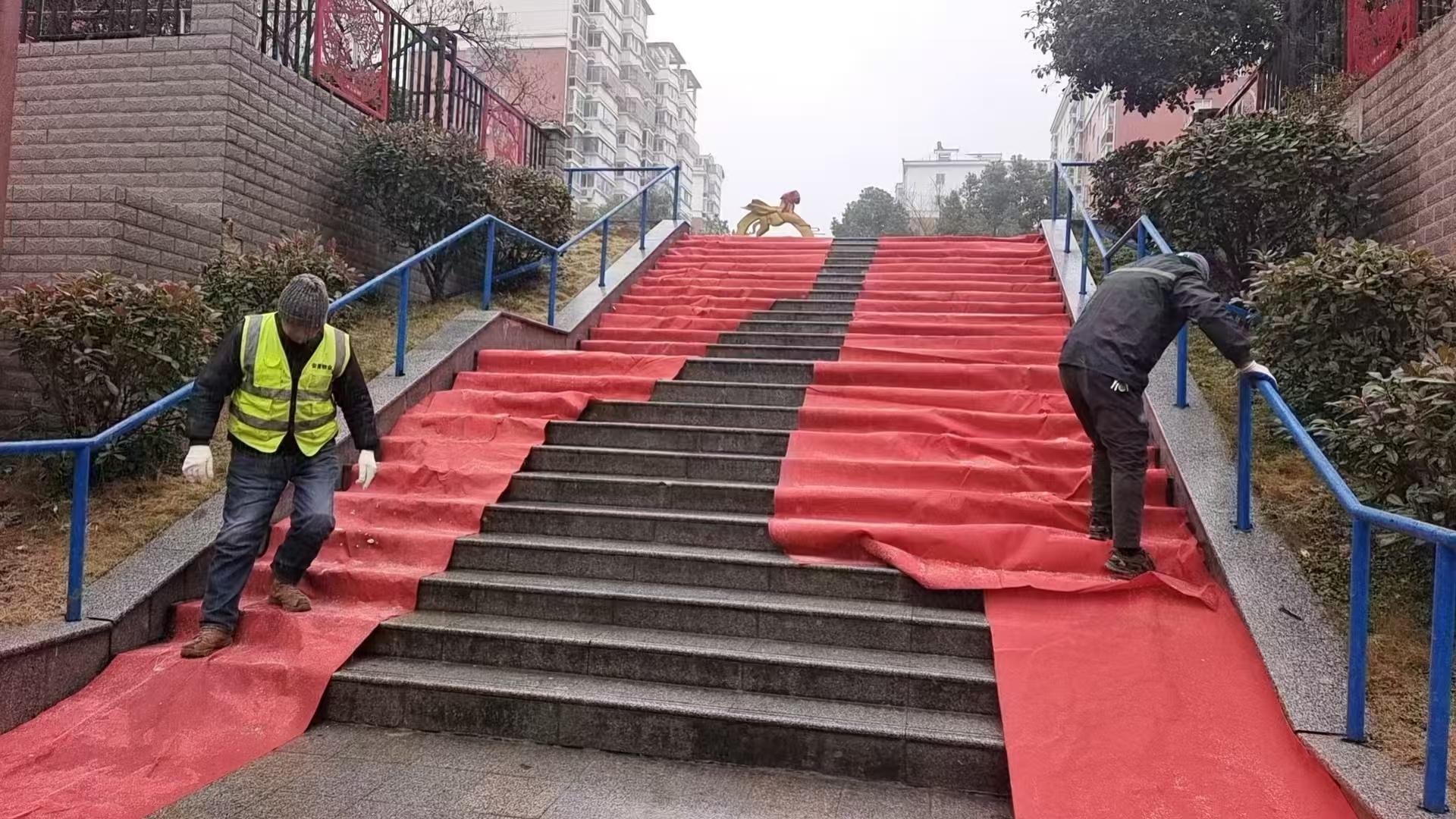 各物业企业提前制定应急预案,成立工作专班,责任落实到人。加强物资储备,配备吹风机、长接线板等解冻设备,对水管进行包裹保温,设置临时取水点与桶装水供应,保障居民用水无忧。针对辖区12个连廊小区,物业及时铺设防滑地毯,并在水井管加装电加热丝、浴霸灯等设施,确保连廊通行安全。无物业小区由社区跟进物资支援,并重点走访困难群体,确保帮扶到位。