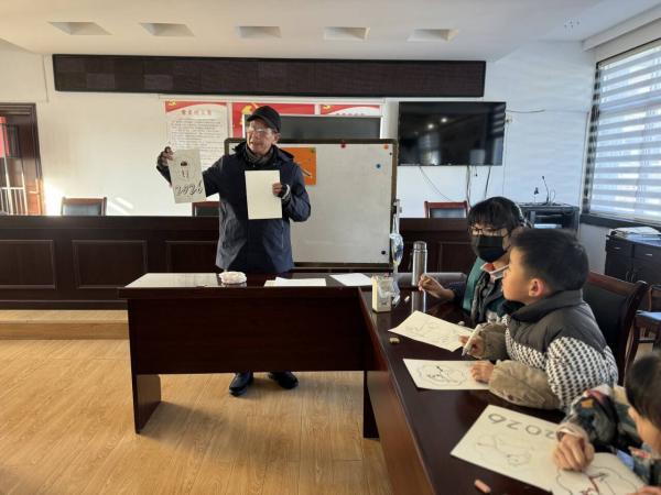 当8岁的奕楠怯生生上台朗诵《敕勒歌》时,全场孩子自发跟诵,稚嫩却清亮的童声震彻整个活动室。受到鼓舞的奕楠挺直腰板,声音愈发洪亮,结束时还主动加诵两句自创的“天苍苍,野茫茫,新年到,喜洋洋”。