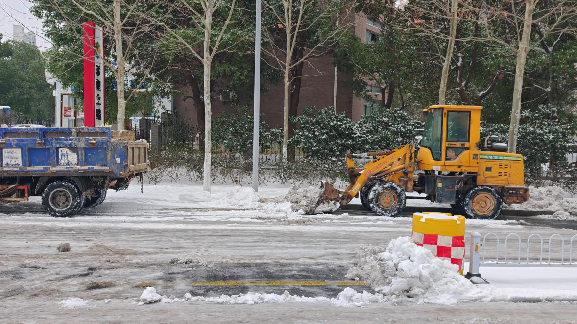联动攻坚除冰雪,同心共筑畅通路。1月20日清晨,辖区道路被厚雪覆盖,社区迅速启动应急响应,联合物业、业委会、共建单位及沿街商户,组建志愿服务队开展清雪行动。志愿者们顶风冒雪,在人行道、单元门口等重点区域清扫,同步铺设防滑地垫。针对主干道厚雪,社区协调铲车介入,以“机械+人工”模式高效清雪,快速恢复道路通行。