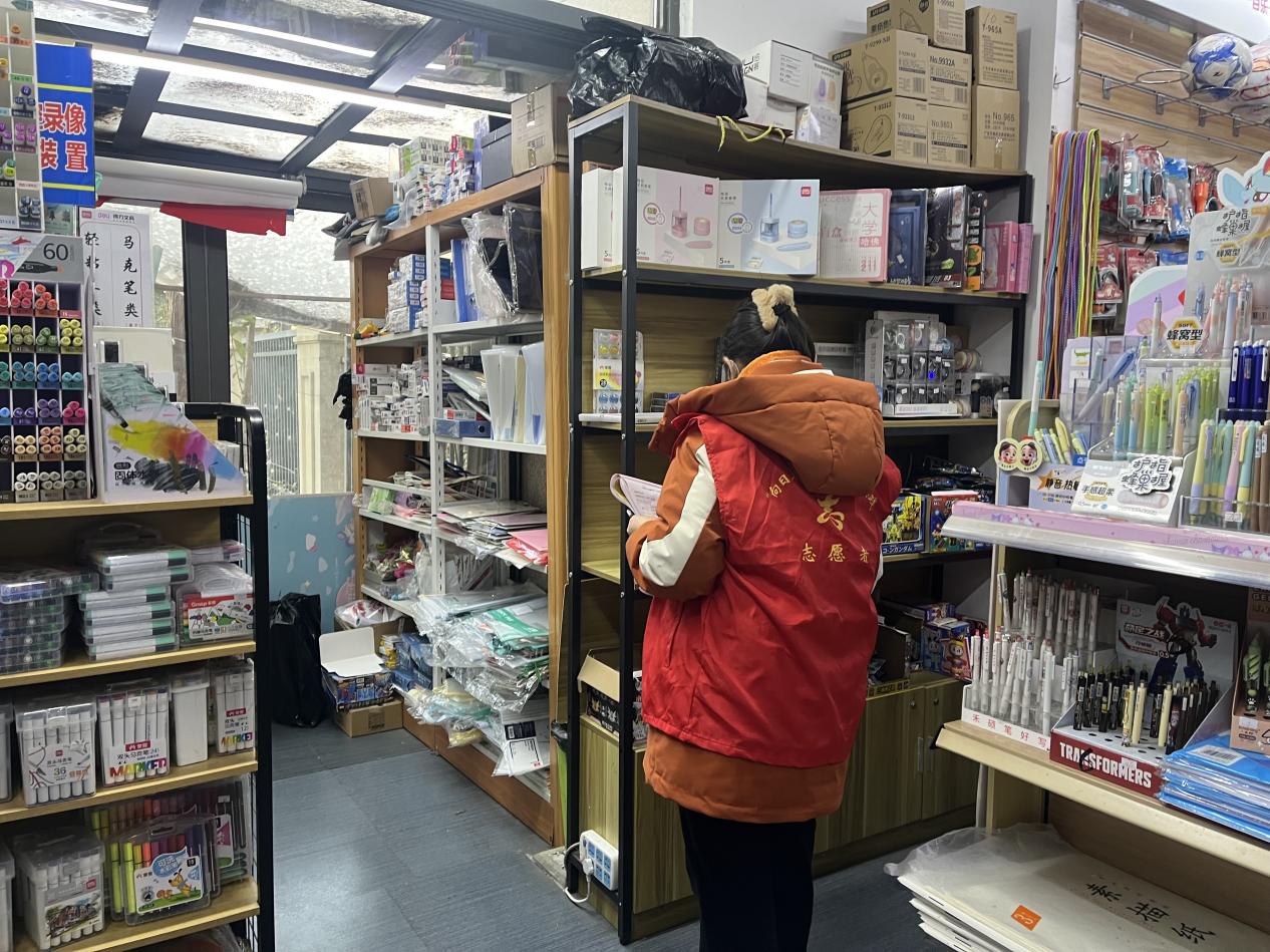 社区检查组严格遵循“全覆盖、无死角、重实效”工作原则,检查人员逐店走访、逐项核查,深入各文具经营场所开展细致排查。检查严把内容关口,针对店内教辅资料、动漫IP笔记本、卡通贴纸、手账胶带、文具盲盒等青少年喜爱的商品开展重点清查,严厉排查是否含有淫秽色情、暴力恐怖、封建迷信等有害内容,同时细致核查出版物及文创产品的版权标识与正规进货渠道,严防侵权盗版产品流入市场。同时规范经营管理,重点查看晨光、国誉等品牌文具的进货台账、销售凭证是否完整规范,督促经营者严格落实进销货管理制度,从源头阻断非法文化产品的流通链条。