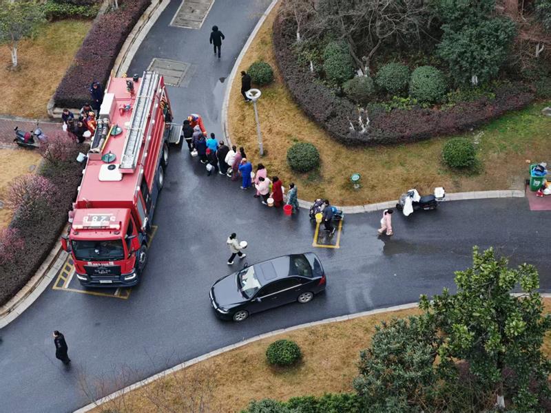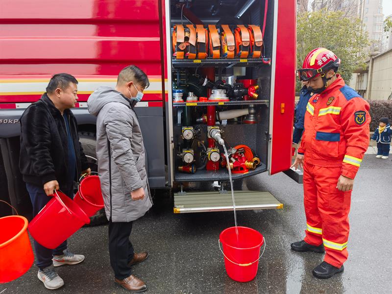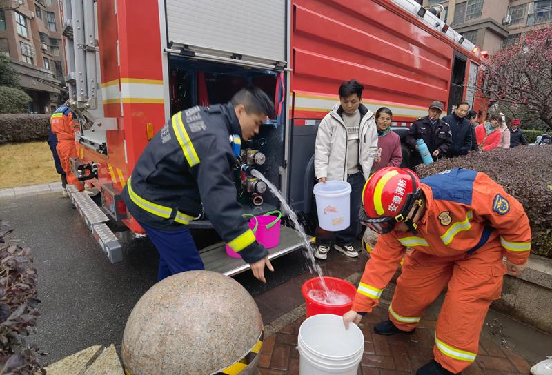 消防救援队伍闻令而动,15分钟后迅速调派水罐消防车赶赴小区。抵达后,社区工作人员与消防员分工协作,有序划定送水点位,引导居民排队取水,同时主动帮扶老人、儿童等特殊群体拎水送水。清澈的水流缓缓注入居民水桶,也抚平了大家心中的焦虑,现场道谢声、水流声交织成暖心画卷。