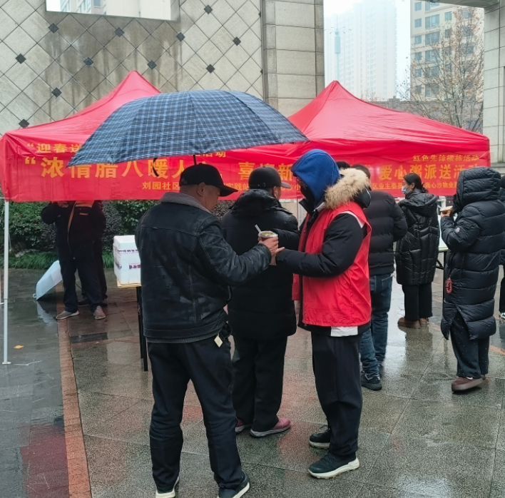 针对高龄、独居、困难老人等行动不便群体,各社区均提前摸排梳理名单,开展上门派送服务。志愿者挨家挨户走访,不仅送上热粥与鸡蛋,还细心叮嘱老人注意保暖和饮食健康。“社区总把我们放在心上,这份关心比啥都珍贵。”独居老人张大爷捧着粥碗感动不已。同时,志愿者们也来到站点为外卖员、快递员等新就业群体开展送粥活动,让奔波在外的群体也感受社区的关怀。活动累计覆盖居民800余人,上门服务30余户困难家庭,实现关怀无死角。