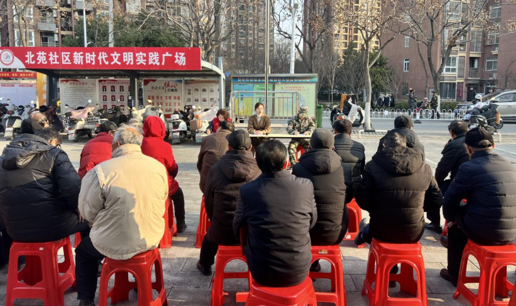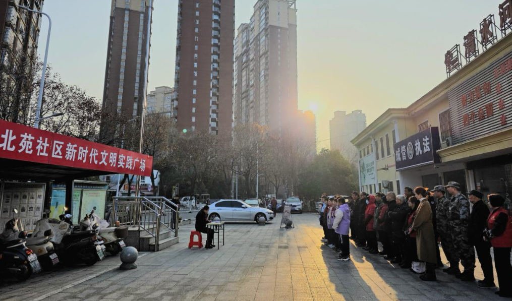 腊月十五寒意浓,国旗飘扬暖人心。为传承红色基因、凝聚党群合力、破解民生难题、厚植家国情怀,2月2日早晨,六安清水河街道北苑社区党总支、新时代文明实践站、团支部、关工委开展“晨光升旗”仪式。辖区50余名党员、居民代表、志愿者、物业、大学生实践者与清水河二小红领巾代表迎着晨光齐聚一堂,以庄重的仪式、稚嫩的宣讲、暖心的互动、务实的议事,让凛冽寒风中的周一清晨充盈着家国担当与邻里温情。