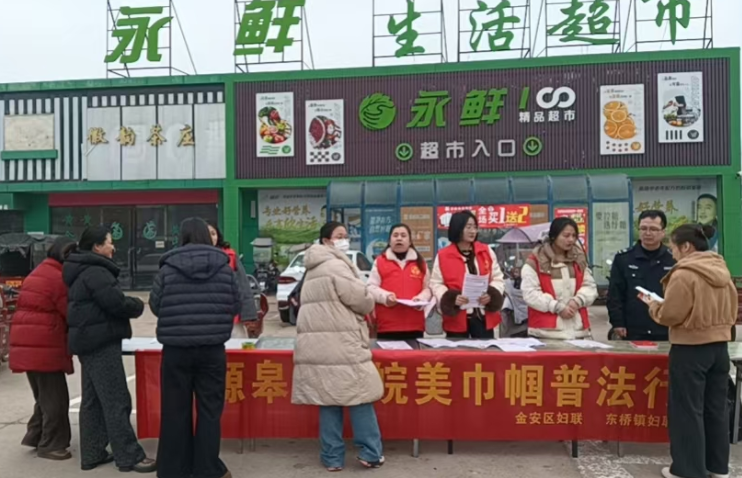 为深入学习贯彻习近平法治思想,切实提升广大妇女群众法治意识和依法维权能力,营造尊法学法守法用法的良好社会氛围,近日,六安金安区东桥镇妇联走进东桥镇农贸市场,开展“法源皋城 皖美巾帼普法行”主题法治宣传活动,把法律知识送到群众身边,把维权服务送到群众心坎上。