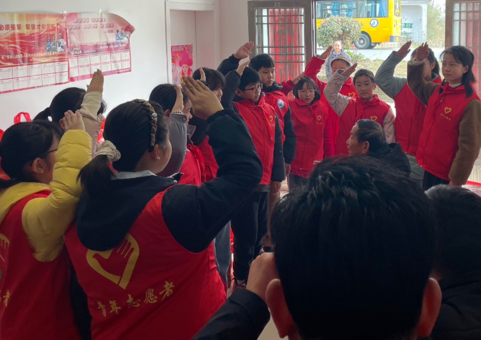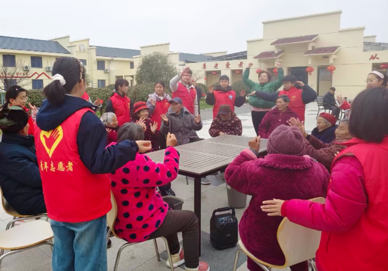 走进敬老院,温情暖夕阳。活动的第一站,志愿者们来到中店镇敬老院。一走进院子,大家便迅速投入服务。志愿者主动带头,带领学生分工协作:有的拿起扫帚、抹布,认真打扫庭院、擦拭门窗,为老人整理房间;有的围坐在老人身边,陪他们拉家常、讲笑话,耐心倾听他们的心声。平日里安静的敬老院,因为这群“红马甲”的到来变得热闹非凡,欢声笑语不断。随后,一场红歌联唱将现场气氛推向高潮。志愿者、师生们与老人们齐声高唱经典红歌。熟悉的旋律与激昂的歌声交织,唱出了对党和祖国的深情,也唱出了代代相传的真挚情谊,老人们的脸上洋溢着幸福的微笑。