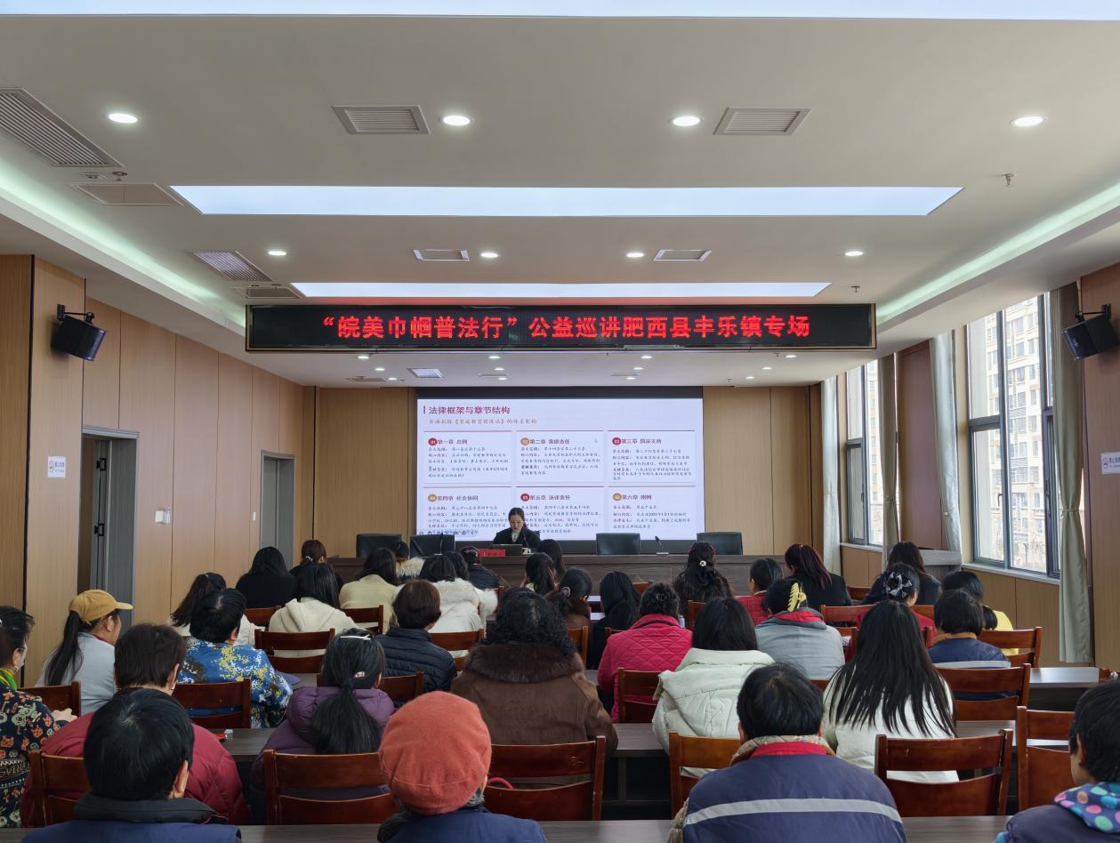 巧手匠心带来的愉悦尚未散去,一场干货满满的法治盛宴随即开启。本次活动特邀“皖美巾帼普法行”公益巡讲团走进丰乐镇,知名律师余清雯带来专题授课。余律师紧扣时代脉搏,以《中华人民共和国家庭教育促进法》为核心,结合丰富的执业经验,为在场的妇联主席们带来一场深入浅出的法律知识讲座。