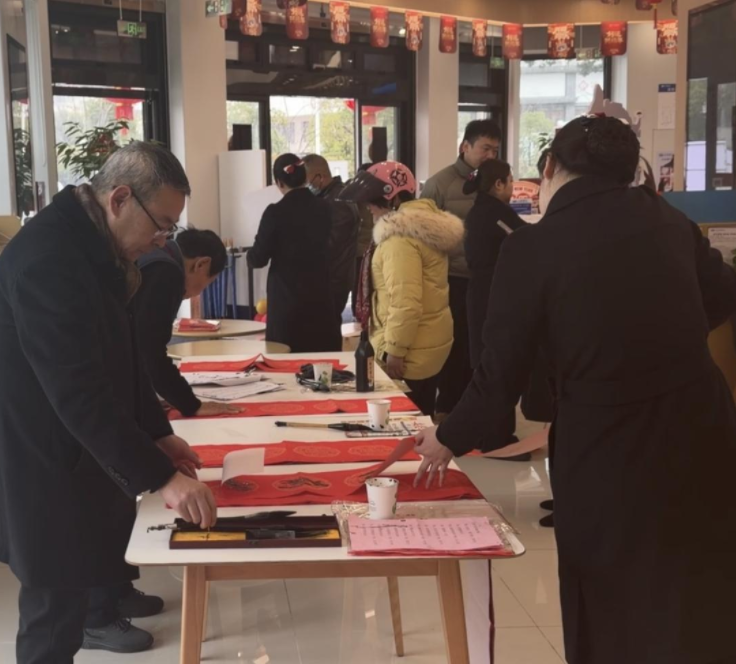 春节前夕,支行特邀本地书法名家亲临厅堂,铺纸研墨、挥毫泼墨。一幅幅寓意吉祥的马年春联、一个个饱满圆润的“福”字跃然纸上,“马到成功行好运,兴业安康纳百福”等佳句,既饱含对新年的美好憧憬,也融入了兴业银行的服务初心。前来办理业务的客户纷纷驻足欣赏,排队领取心仪的春联与“福”字。工作人员贴心协助晾晒、整理,现场暖意融融。“手写的春联才有真正的年味儿,兴业银行太贴心了!”领到春联的客户笑容满面。