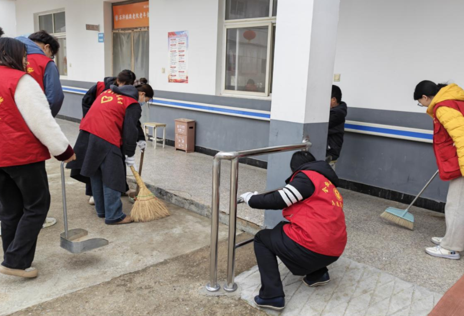在石沛镇敬老院,志愿者们干劲十足,使用扫帚、抹布等工具,分组对宿舍、食堂、走廊和庭院等区域进行打扫,从院落的地面垃圾到走廊扶手上的灰尘,从厨房的瓷砖到宿舍的窗台,都进行了全面细致的清扫,经过打扫,敬老院里里外外焕然一新,看到干净整洁的居住环境,老人们的脸上露出了开心的笑容。志愿者们还走进老人们的房间,和老人聊家常,询问他们的身体状况和生活需求,并送上问候。