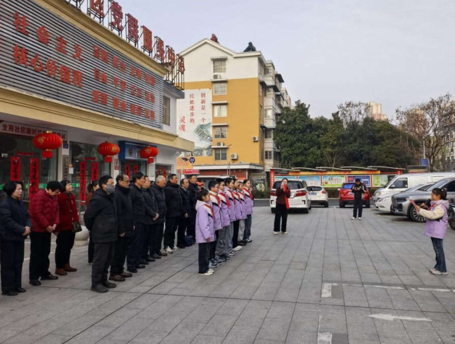 伴随着激昂的国歌声,五星红旗冉冉升起、迎风飘扬,全体人员肃立致敬、行注目礼,每一寸红色都凝聚着社区居民的家国情怀,每一次飘扬都承载着大家共建美好家园的奋进力量。升旗结束后,第二小学的同学们登台宣讲,用稚嫩而坚定的声音,讲述雷锋同志的感人事迹,传递新时代少年的责任与担当,让雷锋精神在青少年心中深深扎根、薪火相传。