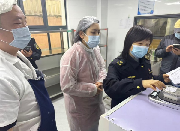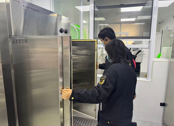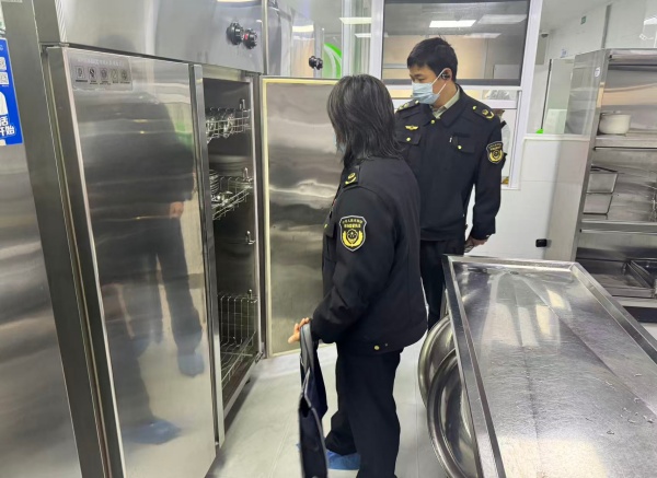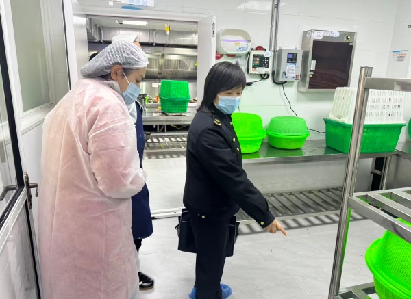 郑海鹰副所长与同行督导人员深入食堂操作间、食材库房、备餐间、消毒间及食品留样区等重点区域,实地查看食堂环境卫生、功能分区布局、设施设备运行等情况。